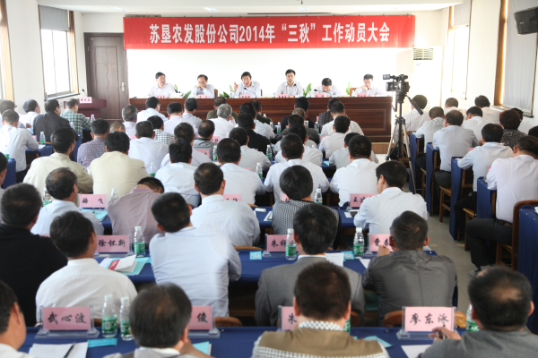 會(huì )議根據整體工作安排,圍繞今年“三秋”工作特點(diǎn),從農業(yè)生產(chǎn)管理和生產(chǎn)技術(shù)的角度,就今年“三秋”工作進(jìn)行了全面、細致的布置。公司各大片區的代表——黃海、東辛、新曹、三河、南通等5家分公司,圍繞如何做好今年“三秋”工作進(jìn)行了表態(tài)發(fā)言;蘇墾農發(fā)股份公司總裁姜建友,分別與各單位總經(jīng)理簽訂了2014年“三秋”工作目標任務(wù)責任狀。會(huì )議還下發(fā)了《2014年“三秋”工作考核評比辦法》、《2014年水稻收購工作意見(jiàn)》和《種植業(yè)基地拓展及管理暫行辦法》。