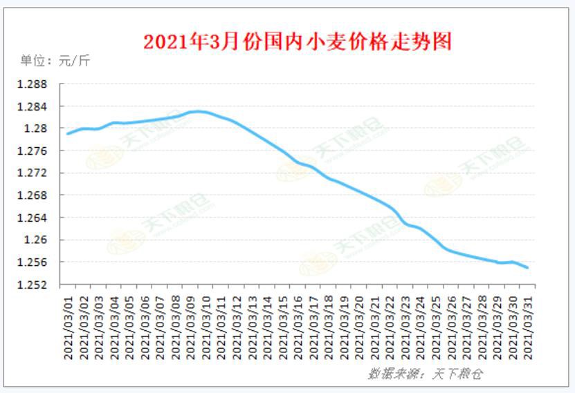 1、國內小麥2021年3 月行情