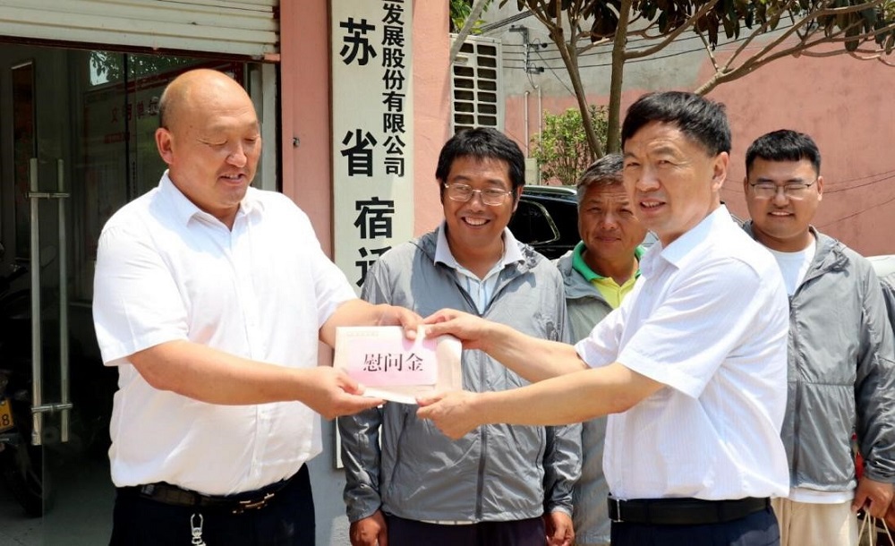 夏日炎炎、驕陽(yáng)似火。帶著(zhù)對一線(xiàn)職工的牽掛,7月14日,蘇墾農發(fā)黨委副書(shū)記、工會(huì )主席倪志愿一行到蘇墾農發(fā)宿遷分公司開(kāi)展“送清涼”、“送安全”走訪(fǎng)慰問(wèn)活動(dòng),看望奮戰高溫的一線(xiàn)管理人員,宿遷分公司相關(guān)領(lǐng)導陪同。
