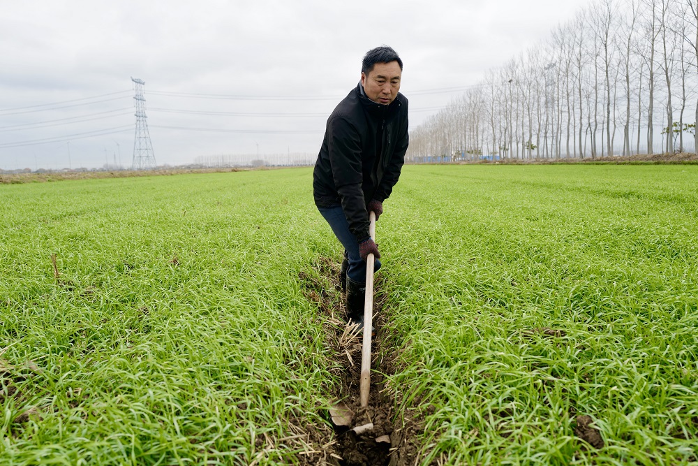 俗話(huà)說(shuō)“麥田一套溝,從種喊到收”,溝系暢通對于小麥的生長(cháng)發(fā)育有著(zhù)重要的意義,也是小麥高產(chǎn)、穩產(chǎn)栽培的關(guān)鍵措施之一。春節前夕,為有效應對雨雪天氣等不利因素的影響,復興圩分公司農業(yè)生產(chǎn)大隊干部職工冒著(zhù)寒風(fēng)扛著(zhù)鐵鍬,仔細檢查大田內外三溝的疏通情況,保證排水暢通,達到雨止田干、溝無(wú)積水的效果。