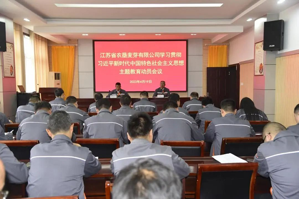 4月19日上午,蘇墾麥芽公司召開(kāi)學(xué)習貫徹習近平新時(shí)代中國特色社會(huì )主義思想主題教育動(dòng)員會(huì )議,深入學(xué)習貫徹習近平總書(shū)記重要講話(huà)精神和黨中央決策部署,認真落實(shí)集團黨委主題教育工作要求,對公司主題教育進(jìn)行動(dòng)員部署。公司黨委書(shū)記、董事長(cháng)郭世平作動(dòng)員講話(huà),黨委副書(shū)記、總經(jīng)理吳善河主持會(huì )議。