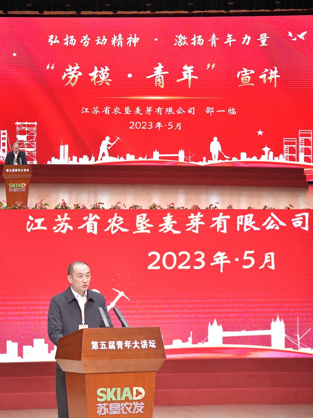 活動(dòng)期間,還開(kāi)展了以“弘揚勞模精神 激揚青年力量”為主題的青年勞模宣講。江蘇農墾第五屆勞動(dòng)模范、蘇墾麥芽黨委委員、副總經(jīng)理、工會(huì )主席邵一臨,是一名80后的青年勞模,他以“功崇惟志 業(yè)廣惟勤”為題給青年們進(jìn)行了宣講,他用自己的親身經(jīng)歷、成長(cháng)故事、奮斗歷程,詮釋了勞模精神、勞動(dòng)精神和奉獻精神,激勵著(zhù)在場(chǎng)的每位青年,大家紛紛表示,要以勞模先進(jìn)為榜樣,學(xué)習他們愛(ài)崗敬業(yè)、艱苦奮斗、甘于奉獻、敢于擔當、勇于創(chuàng )新的精神,以更加昂揚的斗志、更加飽滿(mǎn)的熱情投入到自己的工作和生活中去。