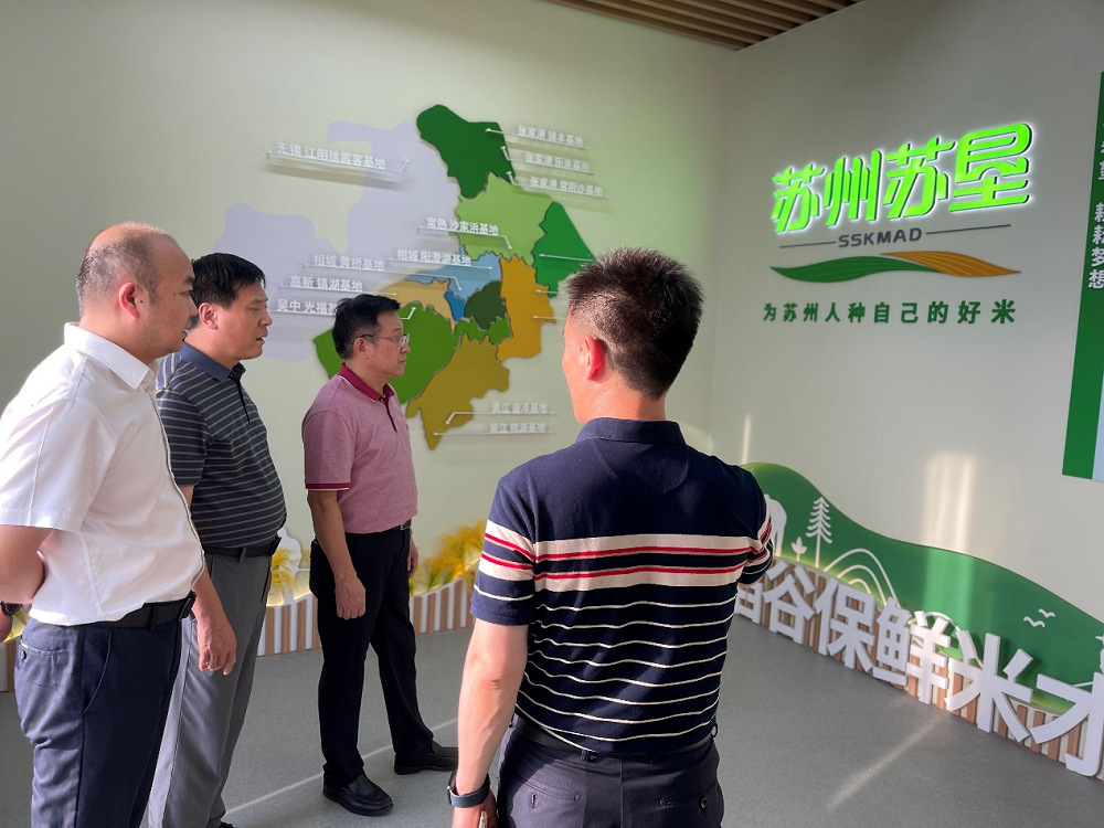 7月16日,省糧食和物資儲備局黨組成員、副局長(cháng)李德,省糧油學(xué)會(huì )理事長(cháng)夏春勝等領(lǐng)導到蘇州蘇墾展示店調研指導工作。