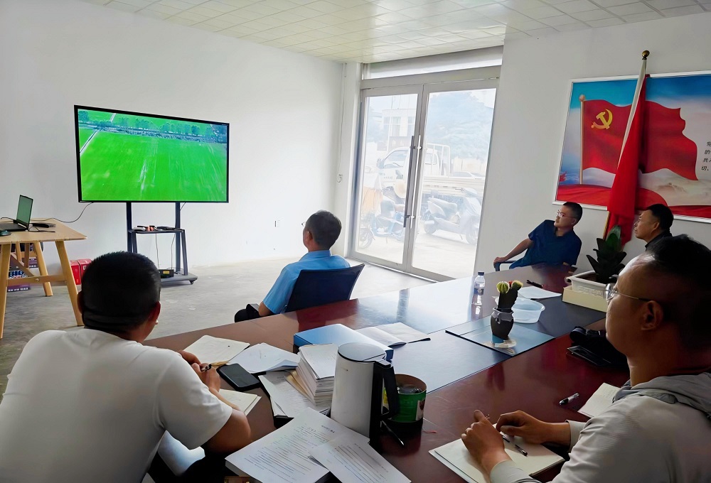 在外拓基地張灣生產(chǎn)區會(huì )議室,生產(chǎn)區管理人員和基地管理辦公室技術(shù)人員正在通過(guò)大疆司空系統對無(wú)人機巡田過(guò)程進(jìn)行現場(chǎng)直播,操控人員在田間按照提前規劃好的航線(xiàn)操控無(wú)人機,生產(chǎn)區管理人員在會(huì )議室通過(guò)投屏進(jìn)行現場(chǎng)觀(guān)看。觀(guān)看過(guò)程中,農業(yè)生產(chǎn)技術(shù)人員將田間管理不足之處一一指出,讓生產(chǎn)區管理人員更加直觀(guān)、充分的了解到哪些地方還需要改進(jìn)。