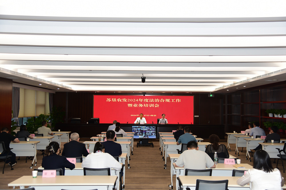 8月27日,蘇墾農發(fā)2024年度法治合規工作暨業(yè)務(wù)培訓會(huì )在寧召開(kāi)。農墾集團黨委委員,公司黨委副書(shū)記、董事、總裁丁濤出席會(huì )議并講話(huà)。