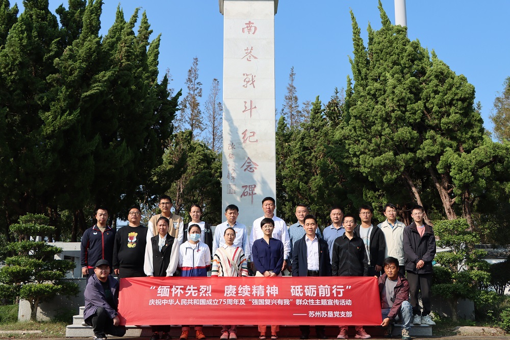 為慶祝中華人民共和國成立75周年,深入落實(shí)《新時(shí)代愛(ài)國主義教育實(shí)施綱要》,2024年10月8日蘇州蘇墾開(kāi)展“緬懷先烈 賡續精神 砥礪前行”慶祝中華人民共和國成立75周年及“強國復興有我”群眾性主題宣傳活動(dòng),引導廣大黨員群眾“沉浸式”學(xué)習,傳承紅色,緬懷先烈、銘記歷史,不忘初心使命,汲取奮進(jìn)力量。